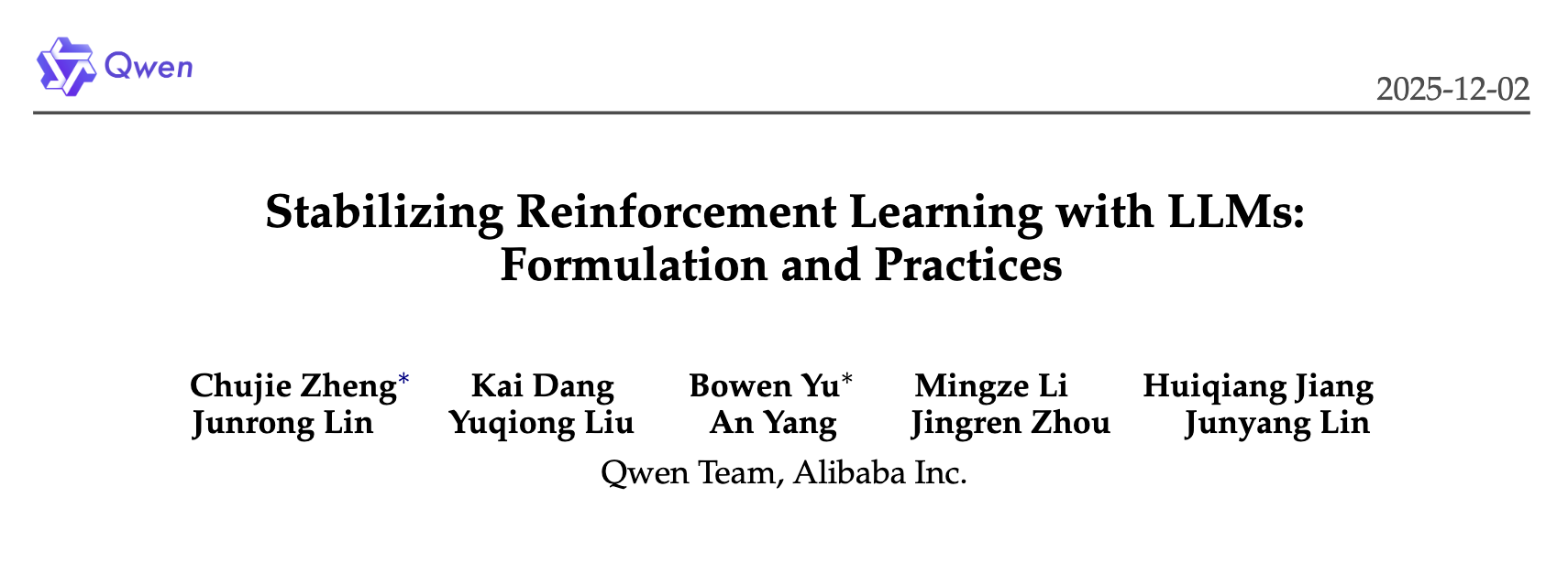 论文标题:Stabilizing Reinforcement Learning with LLMs: Formulation and Practices