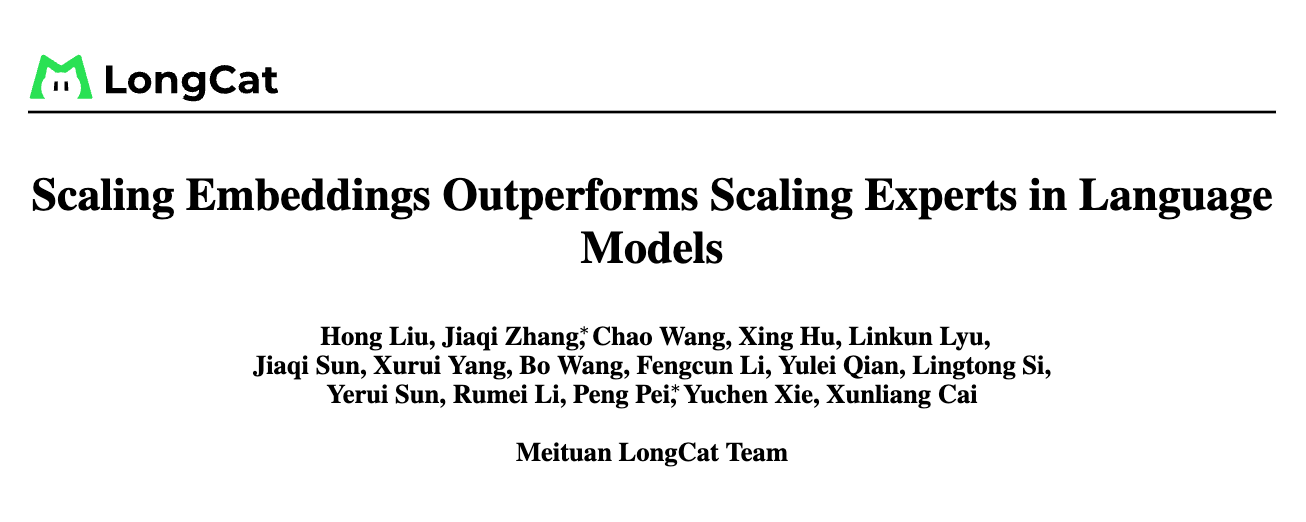 论文标题:Scaling Embeddings Outperforms Scaling Experts in Language Models