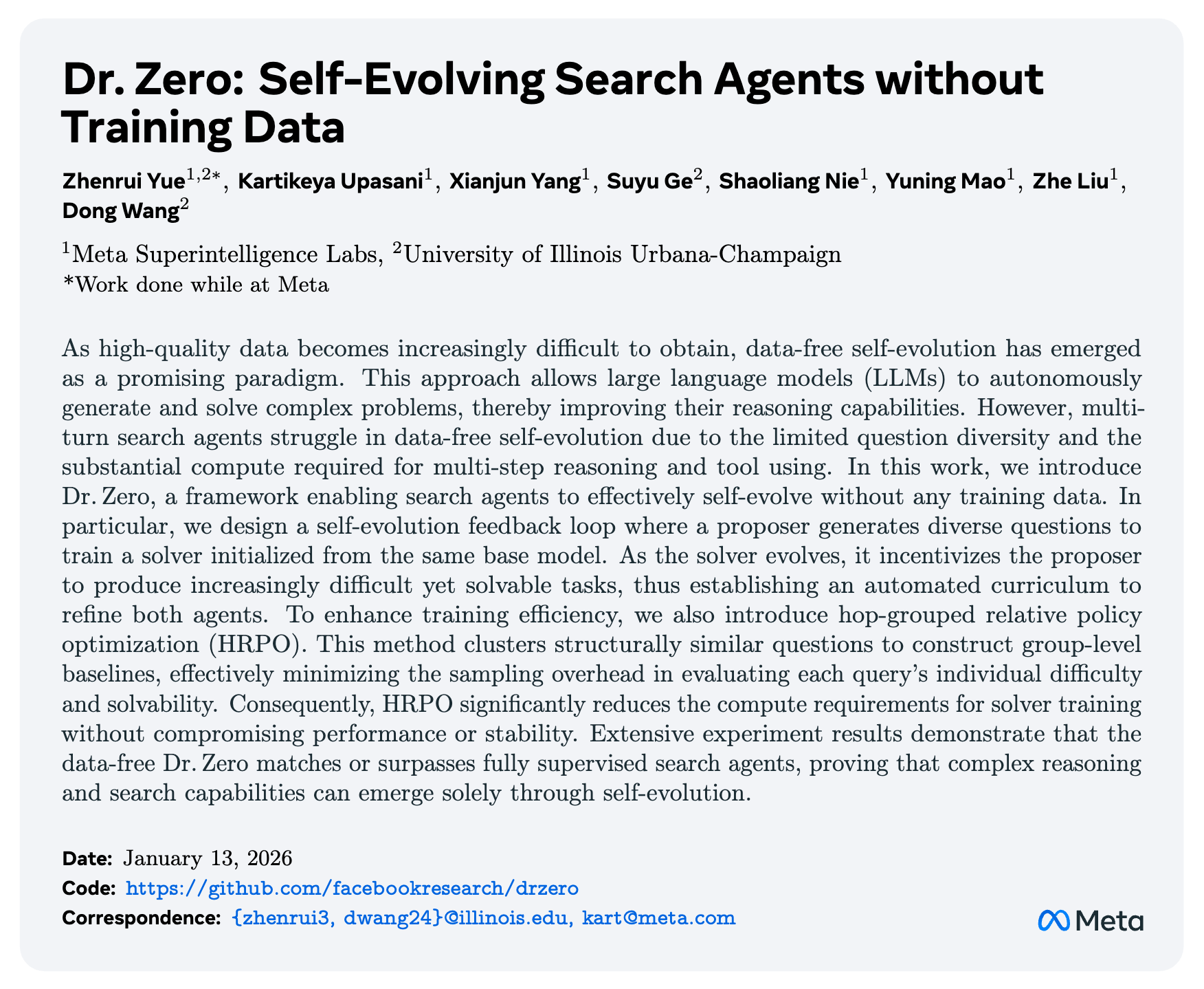 Meta 提出 Dr.Zero:零数据训练的自进化 Search Agent