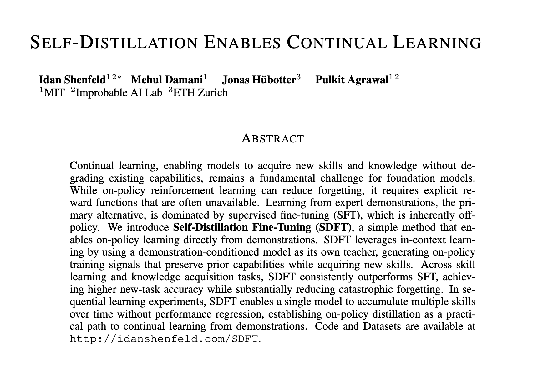 MIT 提出 SDFT:作为逆强化学习(Inverse RL)的在线自蒸馏