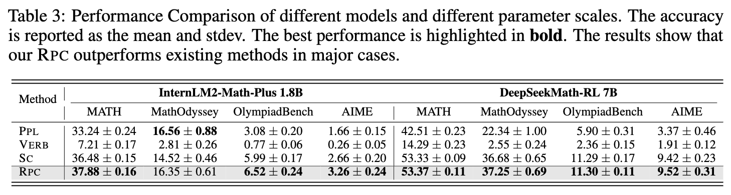 跨模型泛化:在不同规模(1.8B vs 7B)和不同架构(InternLM vs DeepSeek)的模型上,RPC 的优势保持一致(见表 3)。 -