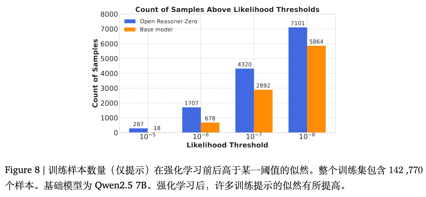 训练后:在经过 RL 训练的 Open-Reasoner-Zero 模型下的似然。