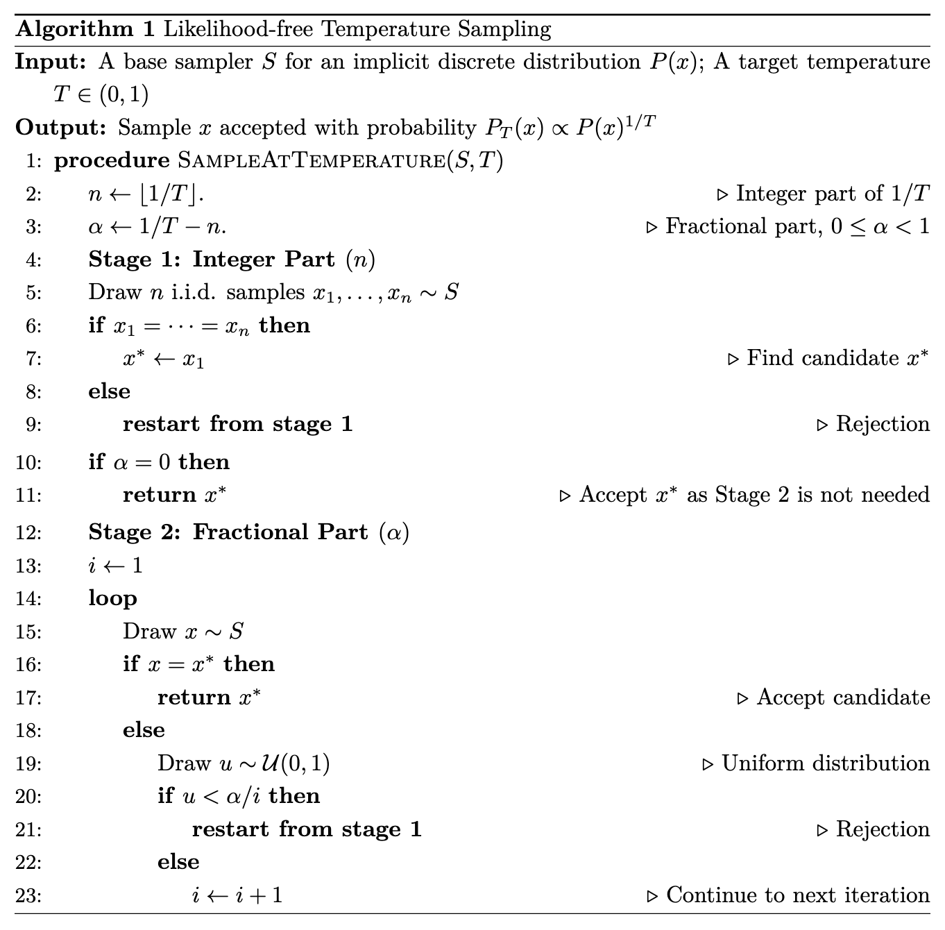 无需似然的温度采样:论文为只有黑盒采样器的情况提供了有原则的解决方案,解决了隐式模型的一个关键可用性问题,使其在实际应用中更具可控性。