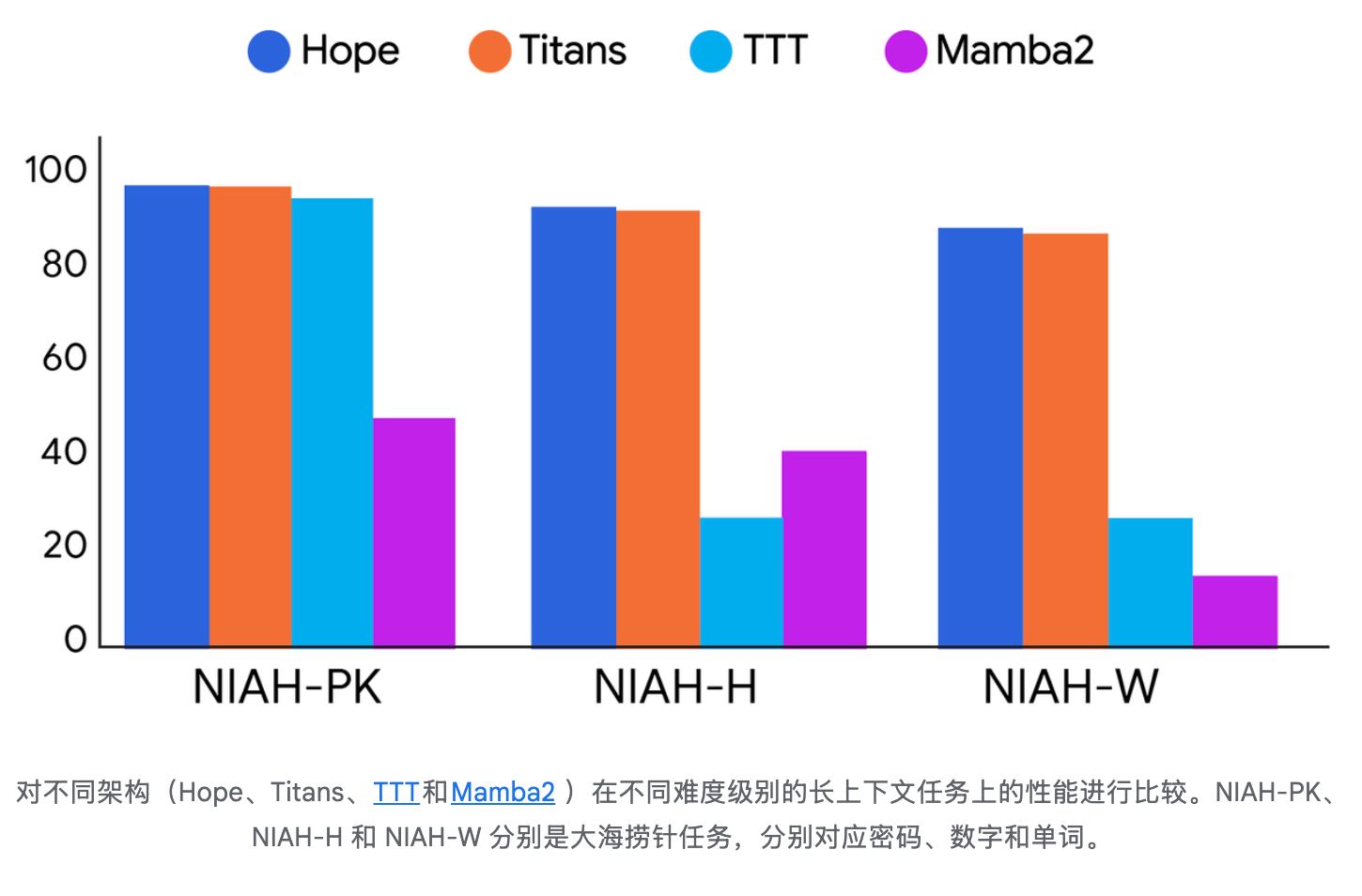 HOPE 架构:作为嵌套学习思想的实践,展示了基于该范式设计的模型在标准任务上的潜力。