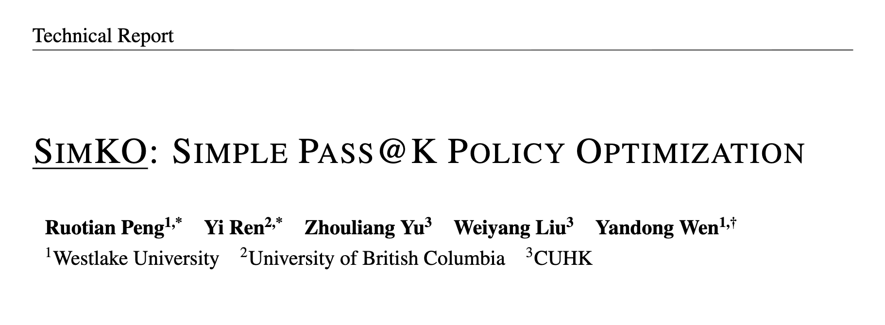 论文标题:SIMKO: SIMPLE PASS@K POLICY OPTIMIZATION -