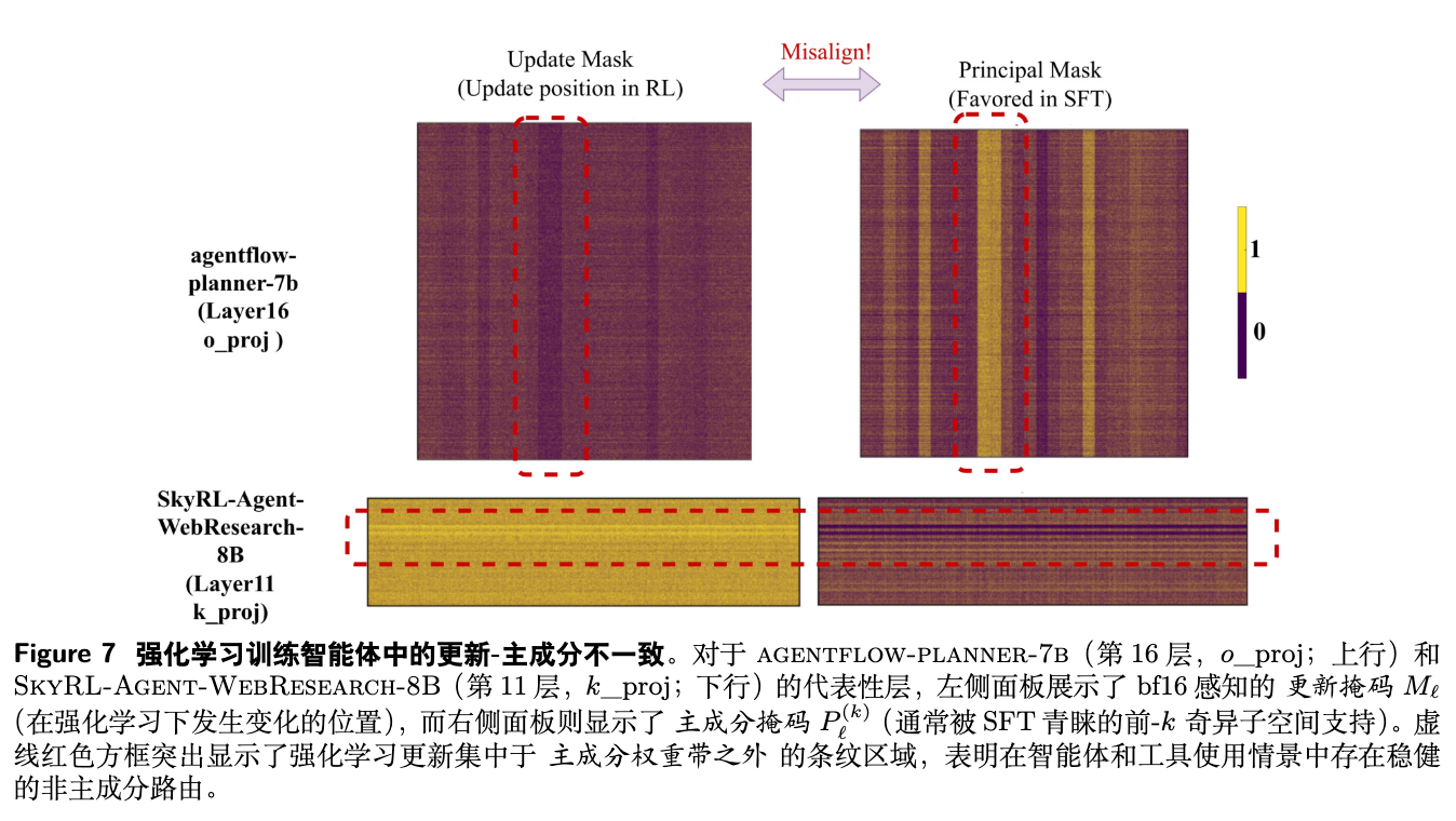 这不仅验证了理论的正确性,还提供了一个简单有效的实践指导:在 RL 中,冻结主权重和高幅值权重,而只更新非主、低幅值的权重,可能是一种高效的稀疏微调策略。
