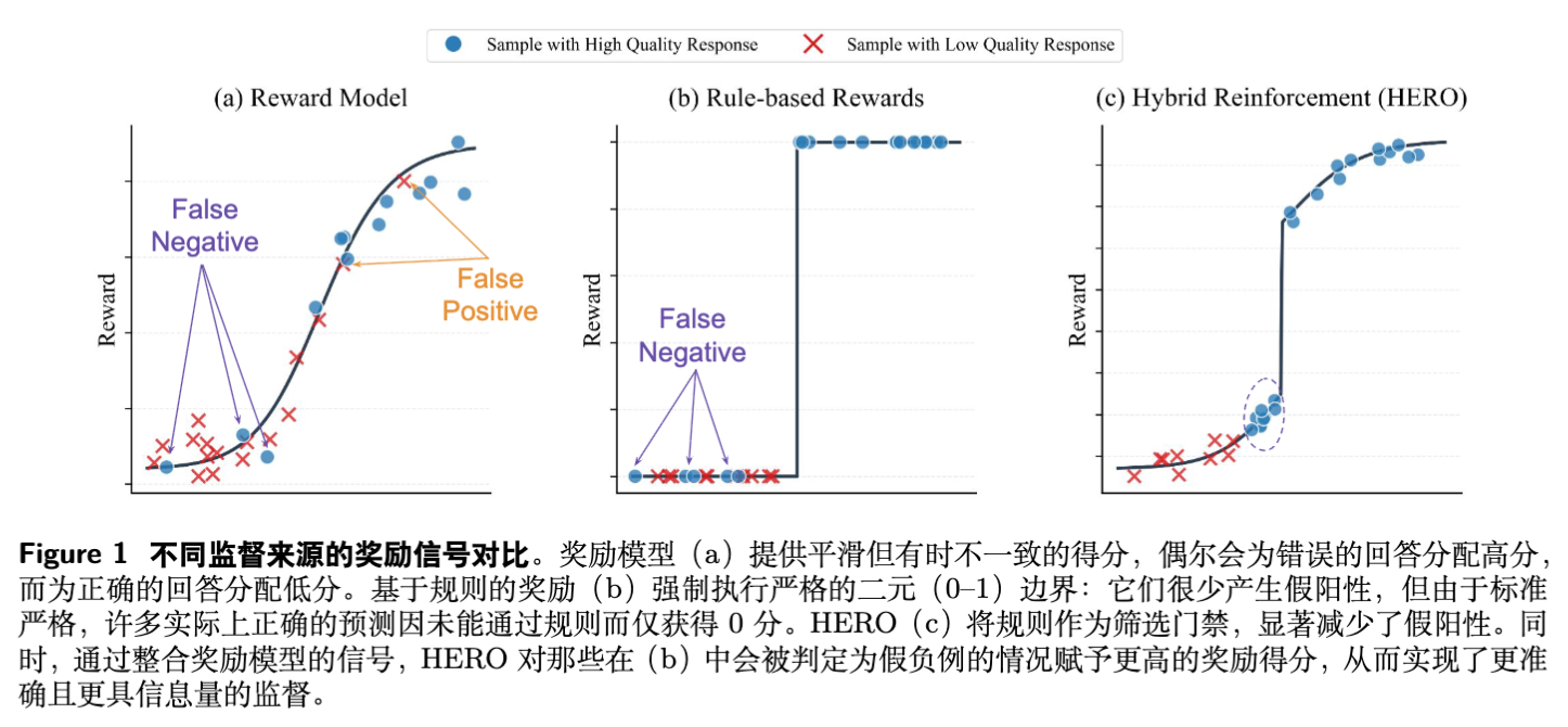 综上所述,HERO 通过分层归一化和方差感知加权这两个机制,构建了一个结构化的混合奖励系统。它不是简单地“和稀泥”,而是让验证器和奖励模型各司其职、优势互补,从而实现了更稳定、更高效的强化学习过程。