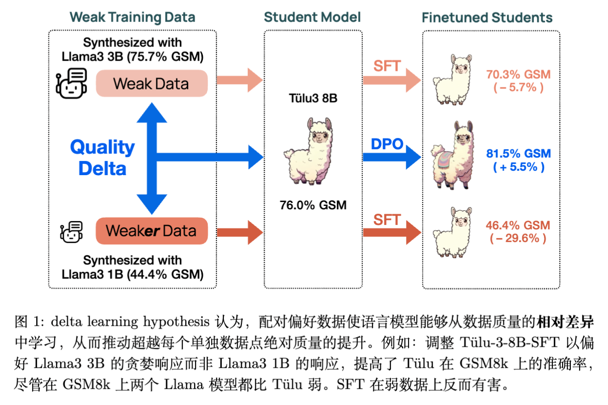 昨天解读了 OLMo3 的技术报告,其中的 DPO 部分用到了 名为 Delta Learning 的方法。提出这个方法的论文《The Delta Learning Hypothesis: Preference Tuning on Weak Data can Yield Strong Gains》恰好中了 COLM 2025,今天我们就来解读一下。