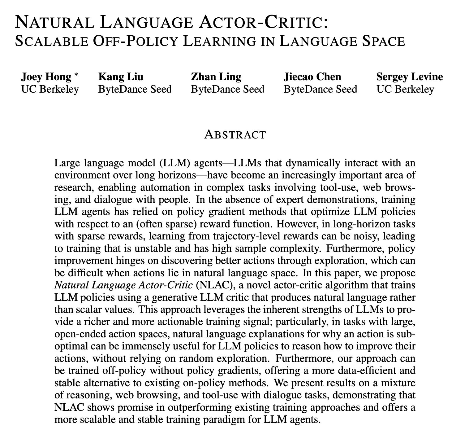 论文标题:Natural Language Actor-Critic: SCALABLE OFF-POLICY LEARNING IN LANGUAGE SPACE -