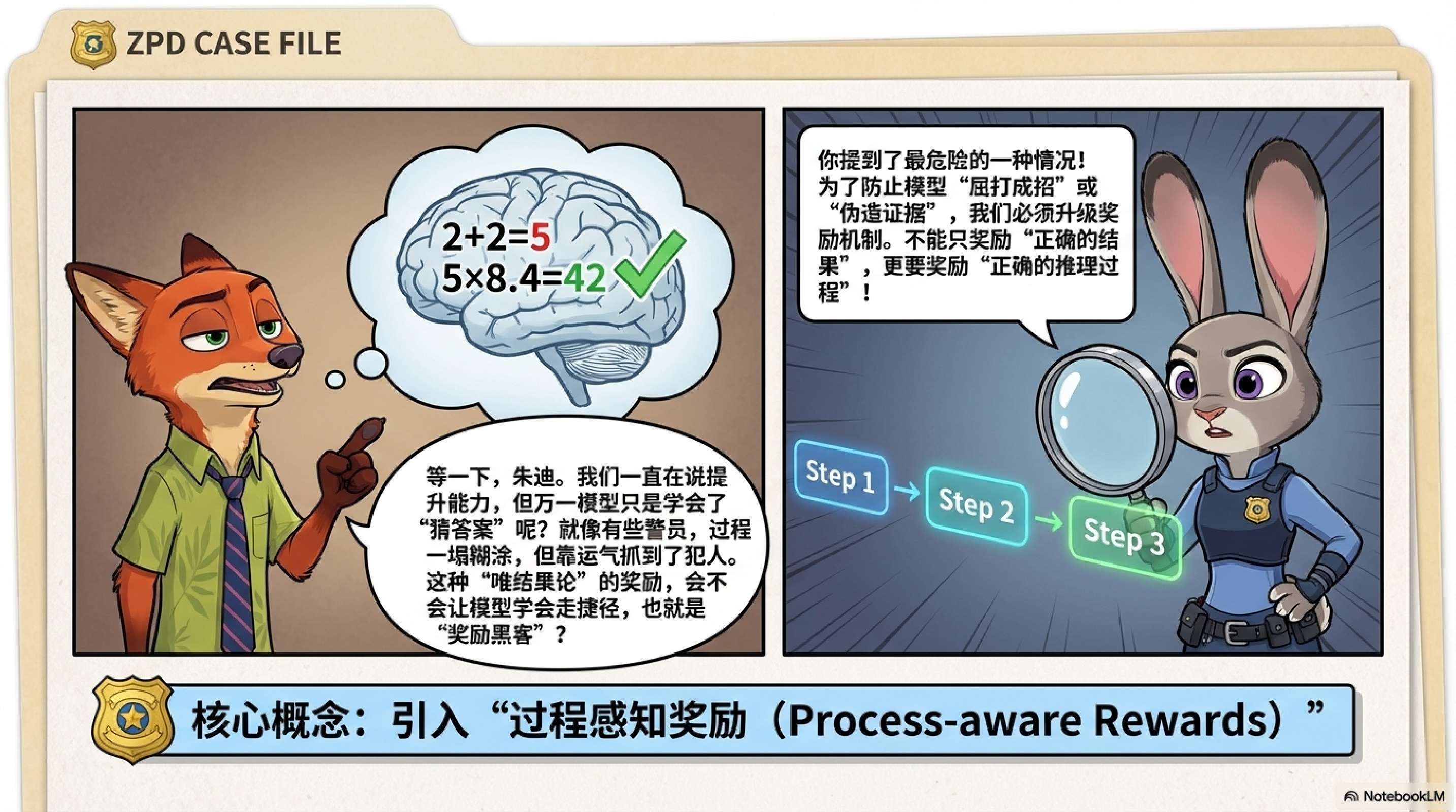 RL 的一个常见问题是奖励破解(Reward Hacking):模型可能通过错误的推理步骤得到正确的答案,或者利用评估漏洞。