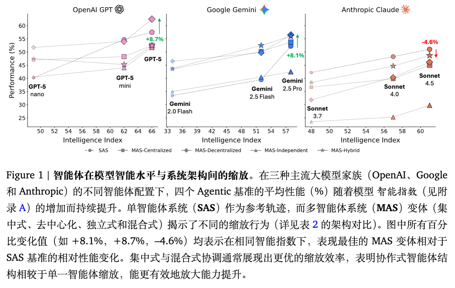 随着大语言模型(LLM)能力的提升,能够推理、规划和行动的智能体(Agents)已成为 AI 应用的主流范式。尽管学术界和工业界普遍采用多智能体系统(MAS),并存在“更多智能体即所需一切(More agents is all you need)”的观点,但这一领域仍缺乏严谨的定量扩展原则。