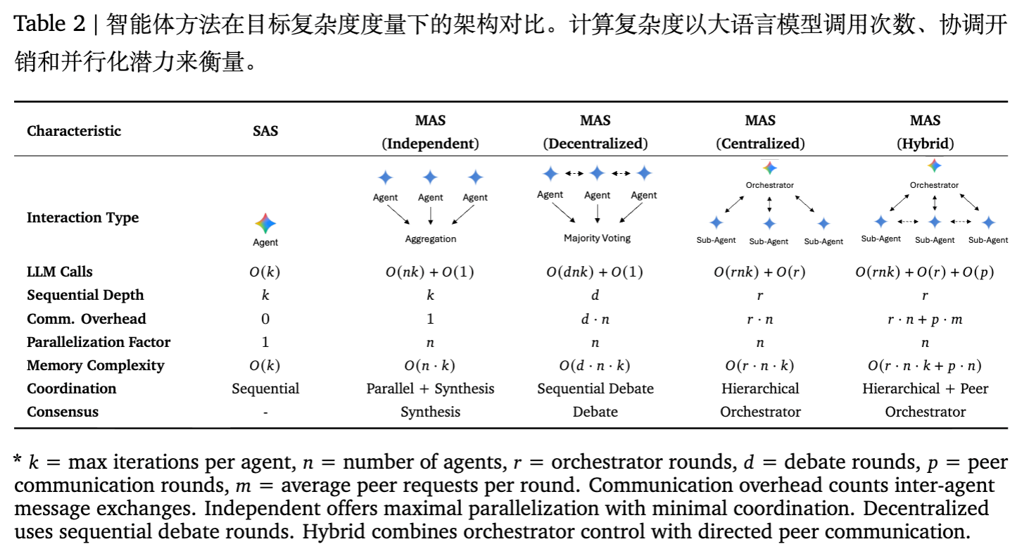 工具密集型任务 (): 尽管开销巨大,但由于单智能体难以处理复杂的工具编排,去中心化多智能体(Decentralized MAS) 利用并行化优势可能胜出。