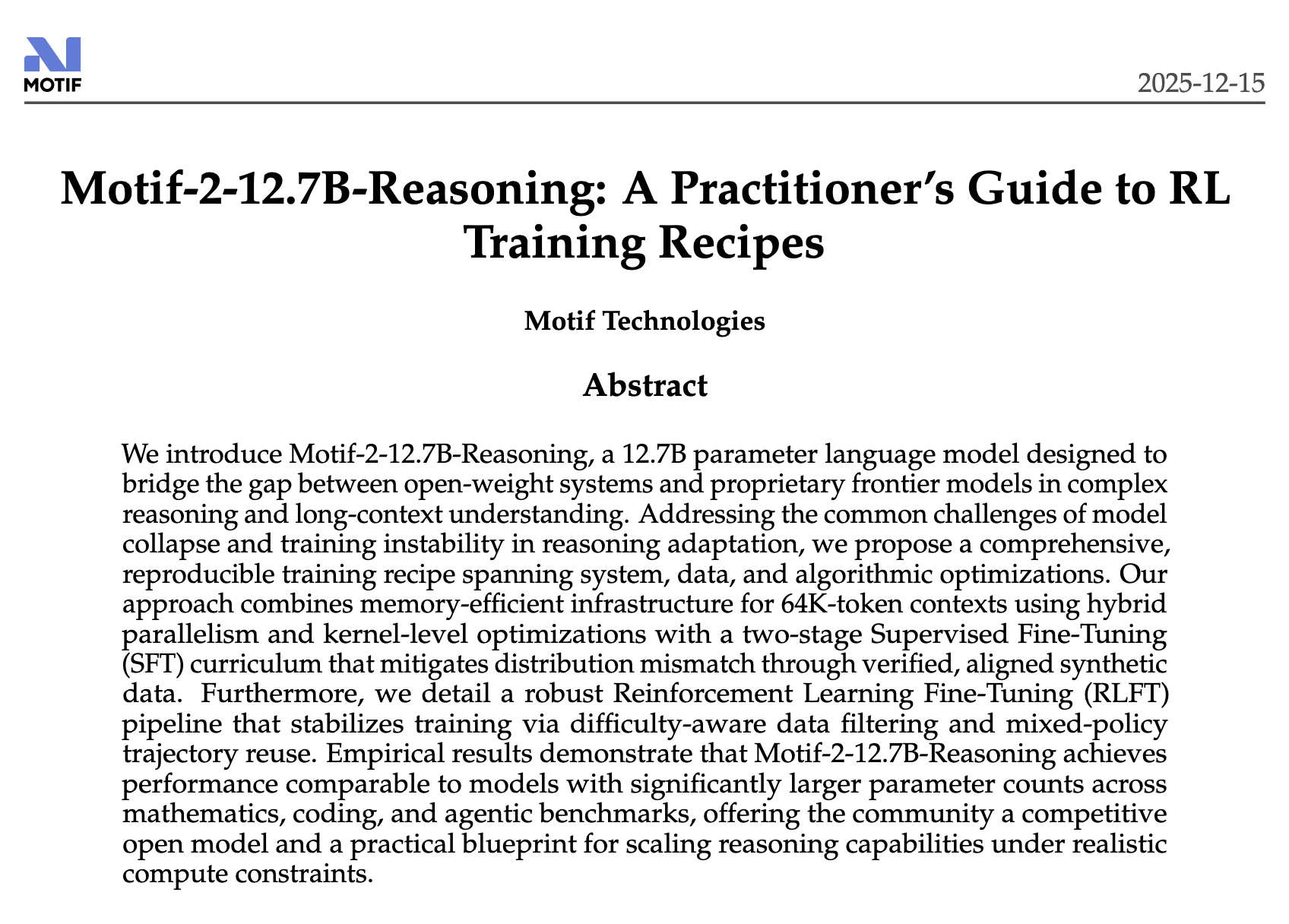 论文标题:Motif-2-12.7B-Reasoning: A Practitioner’s Guide to RL Training Recipes -