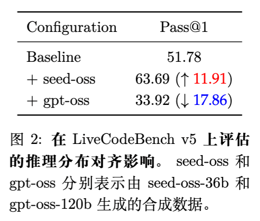 Seed-OSS (36B) :使用 36B 模型生成数据进行微调,Pass@1 提升至 63.69。 -