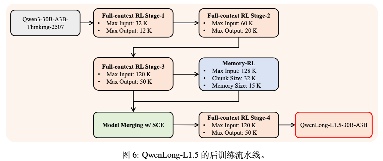 阿里巴巴通义实验室发布的 QwenLong-L1.5 提出了一套针对长上下文推理(Long-Context Reasoning)的系统性后训练(Post-Training)方案。该方案旨在解决当前长文本模型在后训练阶段缺乏高质量数据、RL 训练不稳定以及物理上下文窗口限制等问题。