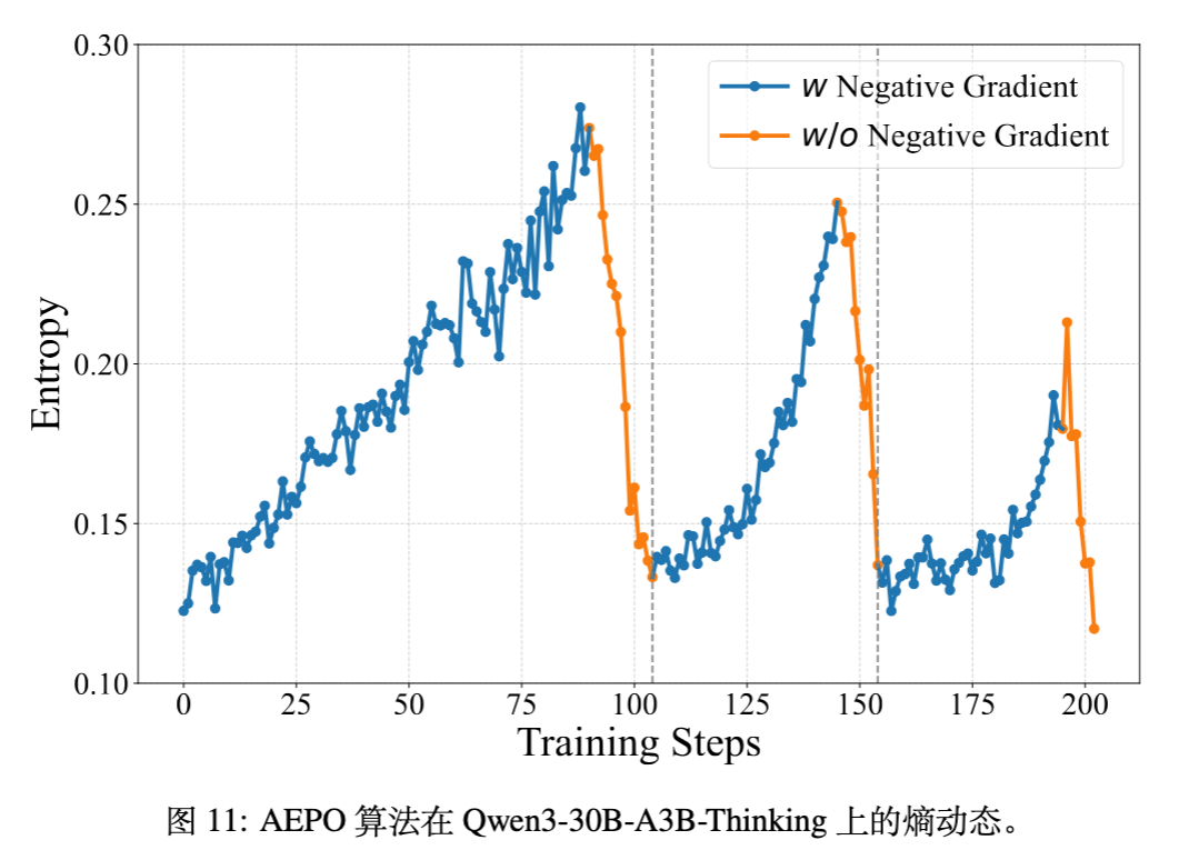 实验证明,AEPO 在保持探索(保留负梯度)和利用(去除负梯度)之间取得了最佳平衡,使模型能够稳定地进行多阶段训练。