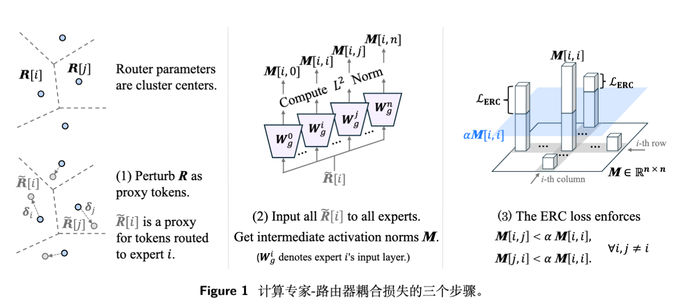 该方法的核心思想是将路由器的权重向量视为专家的“聚类中心”,通过向这些中心添加有界随机噪声生成“代理 token(proxy token)”,并将这些代理 token 输入给所有专家。ERC Loss 通过强制要求每个专家对其对应的代理 token 产生最强的激活,从而在数学上建立了路由器参数与专家能力之间的强耦合。
