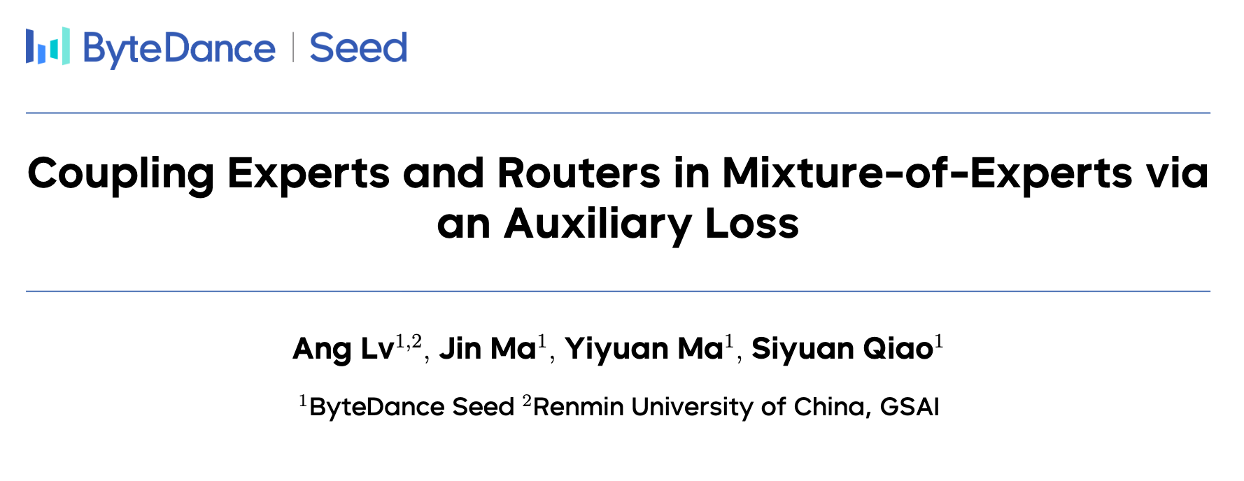 论文标题:Coupling Experts and Routers in Mixture-of-Experts via an Auxiliary Loss -