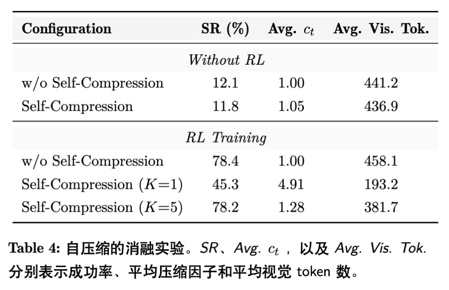 这证明了通过 RL 对齐,VLM 能够学会在高压缩比的视觉历史中进行有效推理。