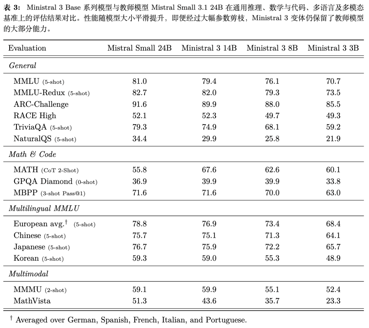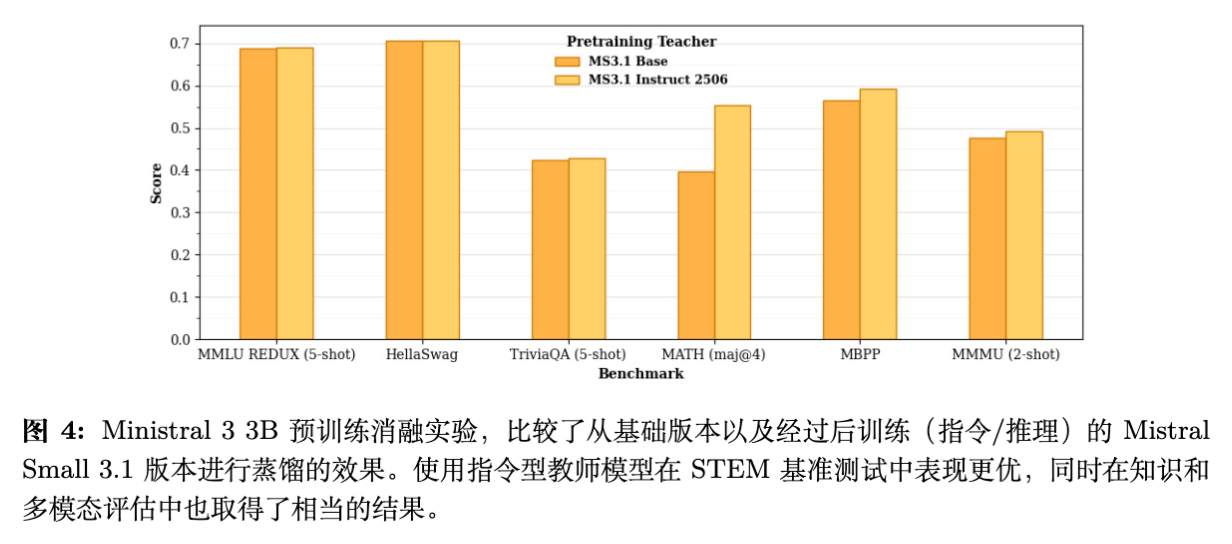 Ministral 3 证明了在受限计算预算下,通过级联蒸馏(Cascade Distillation)策略,可以高效地生产出一系列高性能的密集小模型。