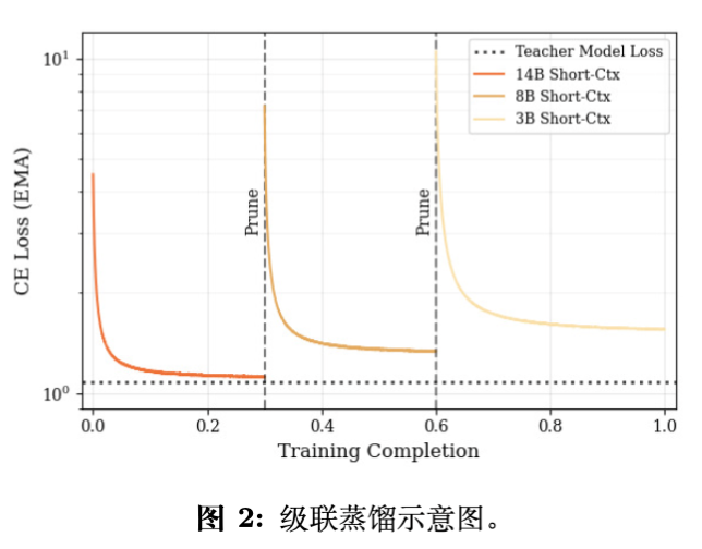 级联蒸馏(Cascade Distillation):通过循环执行“剪枝-蒸馏”过程,依次生成 14B、8B 和 3B 模型,实现了计算与数据的高效利用。 -