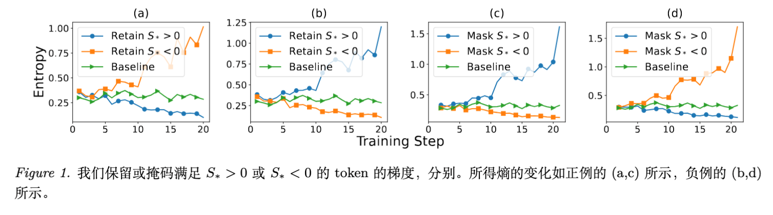 理论解释: 高熵位置通常意味着模型不确定。根据定理 3.3,在这些位置更新正样本会减少熵,更新负样本会增加熵。通过筛选高熵 Token,实际上是在控制 的分布范围,防止极端的 Logit 更新。