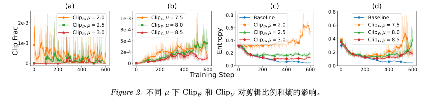理论解释: 截断主要发生在 偏离 1 的时候。对于正样本(),如果 过大(意味着当前策略比采样策略更确信该 Token),通常对应 较高的情况。此时 往往较大,本应导致大幅熵减。截断机制限制了这部分更新,从而缓解了熵减。