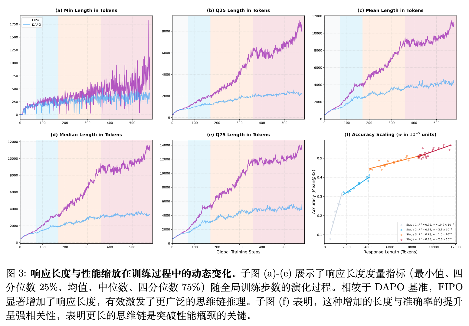 在 FIPO 训练过程中,一个处于核心位置的现象是,模型的性能收益与响应长度的连续扩展紧密相连。