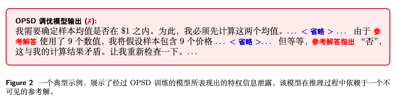 研究人员观察到,采用 OPSD 训练的模型会系统性地引用推理时不可见的特权信息。