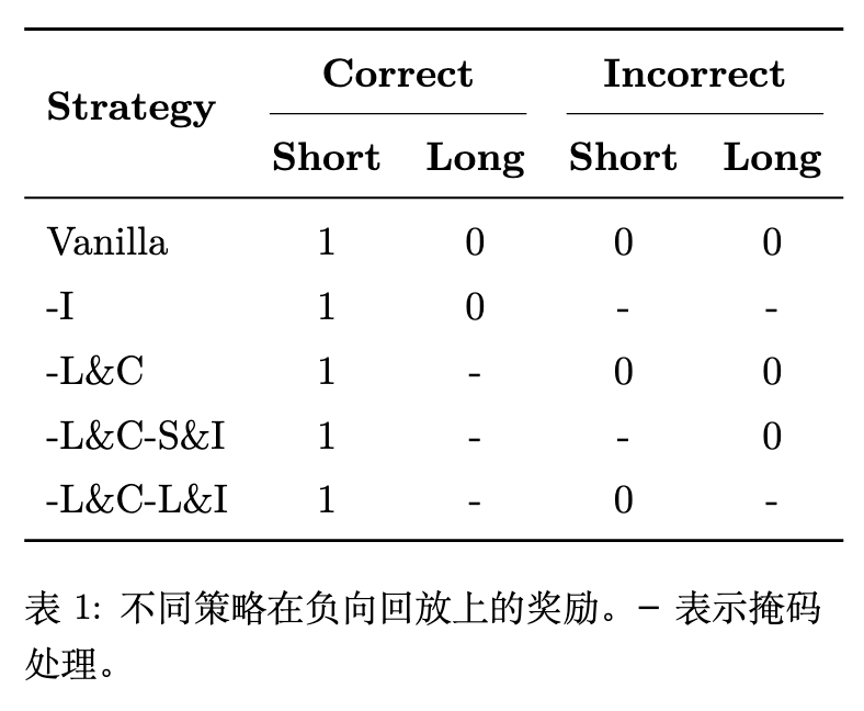 奖励函数与负样本处理:设计奖励函数时需警惕“短即正确”的因果谬误陷阱。直接对“虽然正确但长度超标”的思维轨迹施加负奖励,易导致模型放弃逻辑推理;相比之下,对这部分轨迹采取掩码(masking)策略,或直接设定较短的采样阈值,能在压缩长度与维持性能之间取得相对良好的权衡。 -