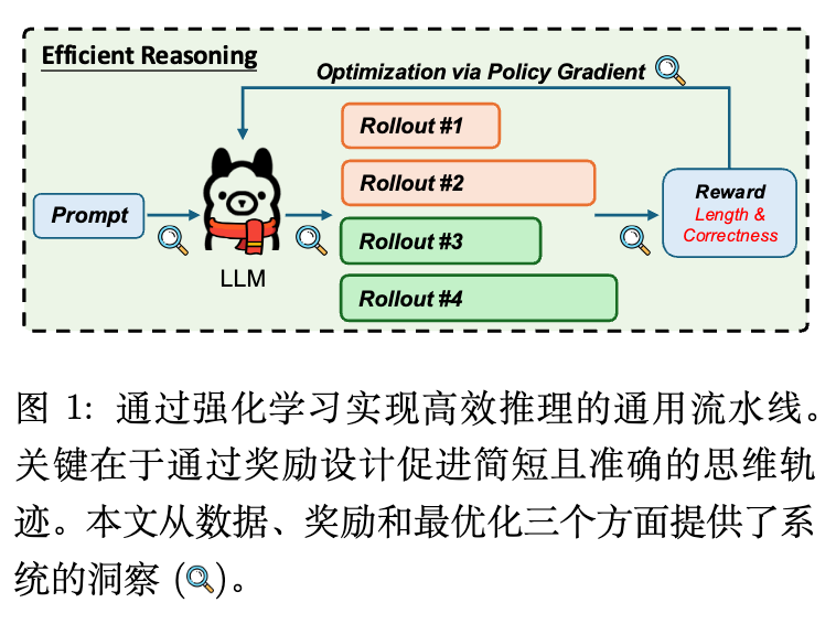 为了缓解这一矛盾,业界提出了“高效推理(Efficient Reasoning)”的概念。其核心理念是激励模型生成简短且准确的思维轨迹。现有的主流方法通常依赖于强化学习(RL)并辅以奖励塑形(Reward Shaping)机制,即根据生成的轨迹长度和最终答案的正确性来分配奖励。基本原则是:在同样给出正确答案的前提下,较短的思维链应当比冗长的思维链获得更高的奖励。