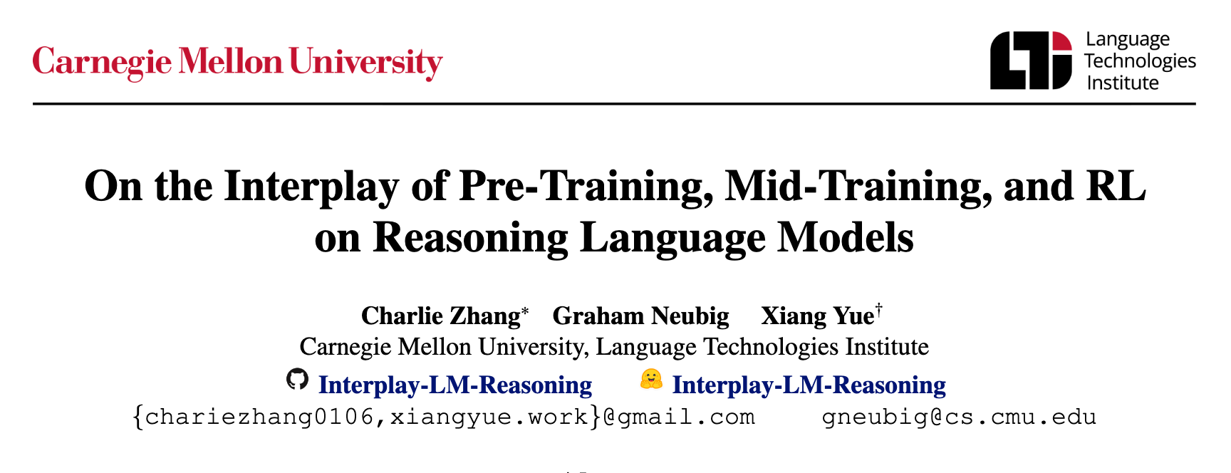 论文标题:On the Interplay of Pre-Training, Mid-Training, and RL on Reasoning Lan