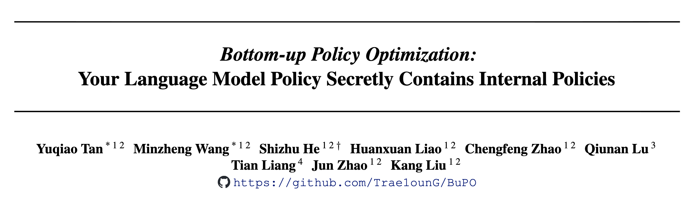论文标题:Bottom-up Policy Optimization: Your Language Model Policy Secretly Cont